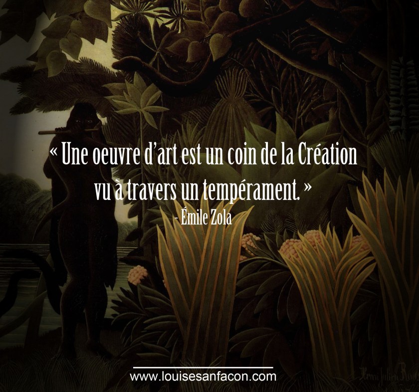 Une citation d’Émile Zola, écrivain et journaliste français du XIXᵉ siècle, accompagnée d’une œuvre d’Henri Rousseau dit Le Douanier Rousseau.